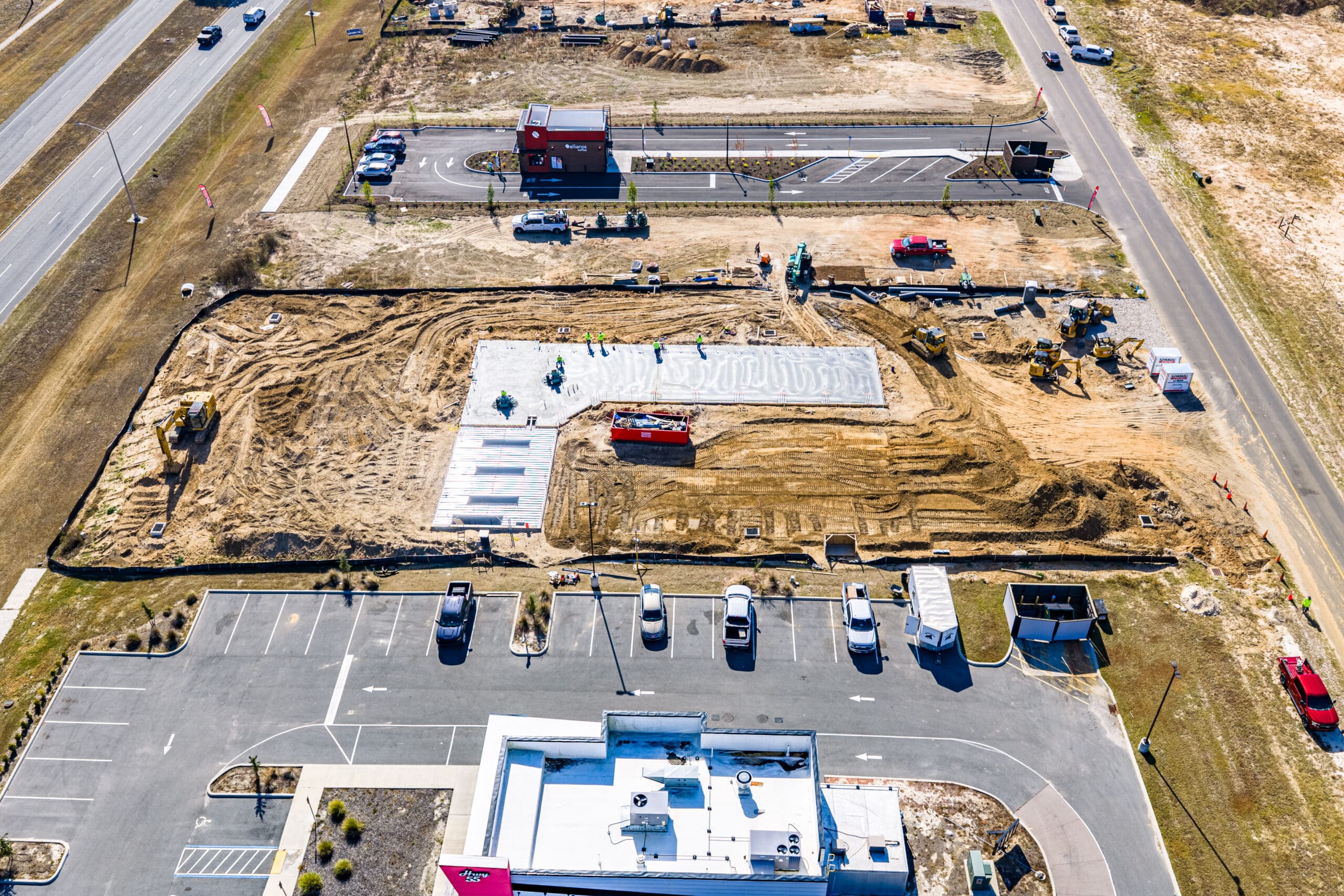 Veuwr Aerials documented another active construction project along the busy Ohio Ave N corridor in Live Oak, Florida, the same road that connects directly to Interstate I-10. During this visit, crews were in the process of pouring concrete, giving us the opportunity to capture detailed aerial visuals of the foundation work, construction sequencing, and the overall site layout. With the DJI Mavic 4 Pro, we produced high-resolution imagery that clearly showcased the progress, equipment positioning, and the surrounding commercial activity along this high-traffic roadway.